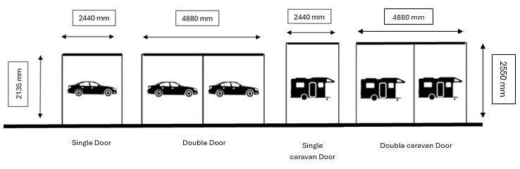 Opening Height -A- Double Caravan 2550mm (H) Opening Width -B1 & B2- 4880mm (W)